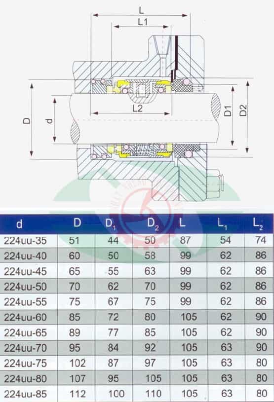 Thông số kỹ thuật phớt phớt máy bơm 224uu